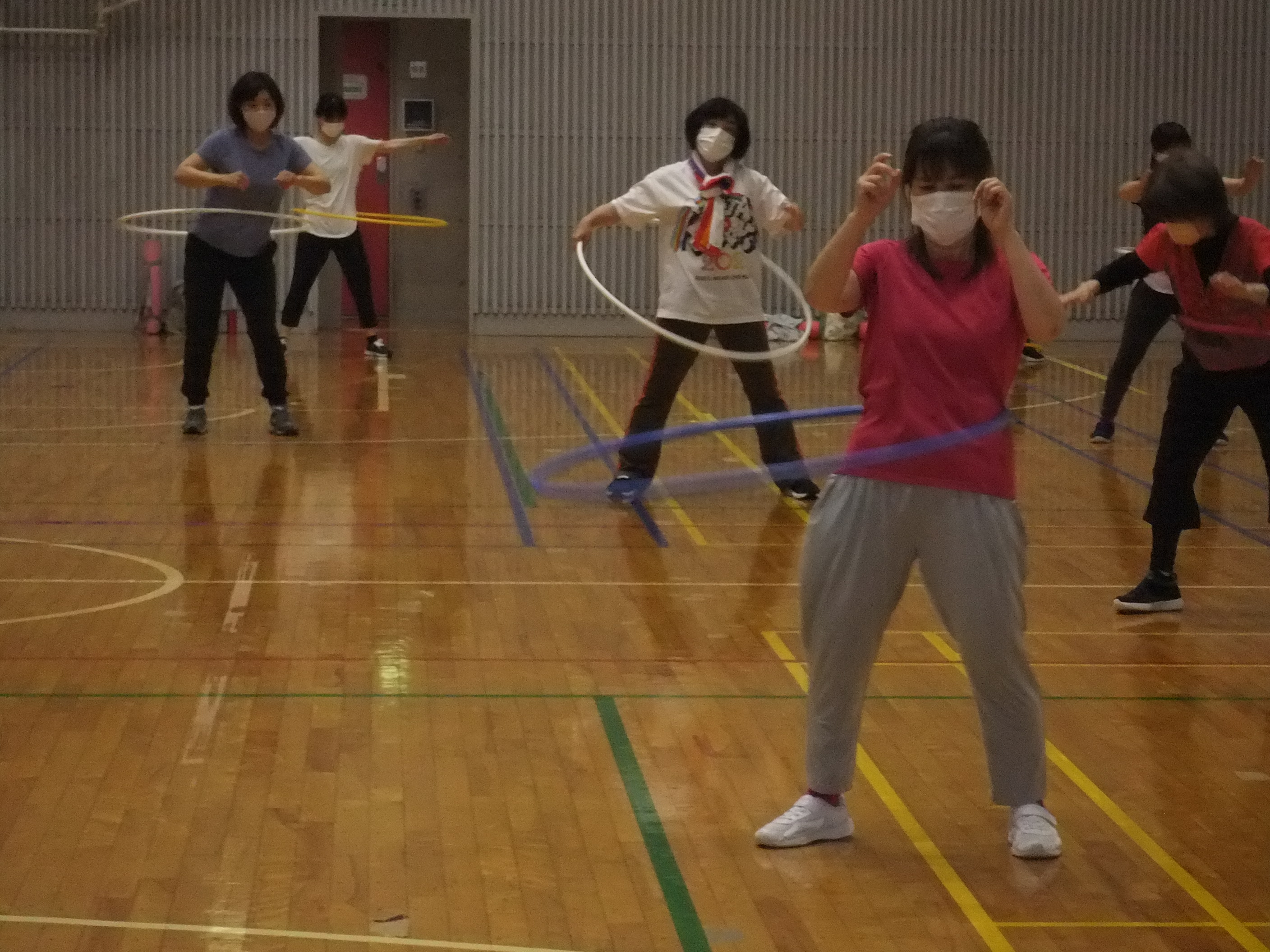 内容は、『カラダを引き締めるためのエクササイズ』として、誰にでもできるエアロビクスやとコアトレ(体幹トレーニング)を行います。